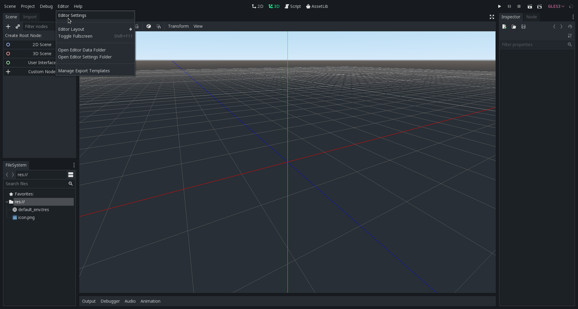 First, open Godot and click the Editor > Editor Settings option: